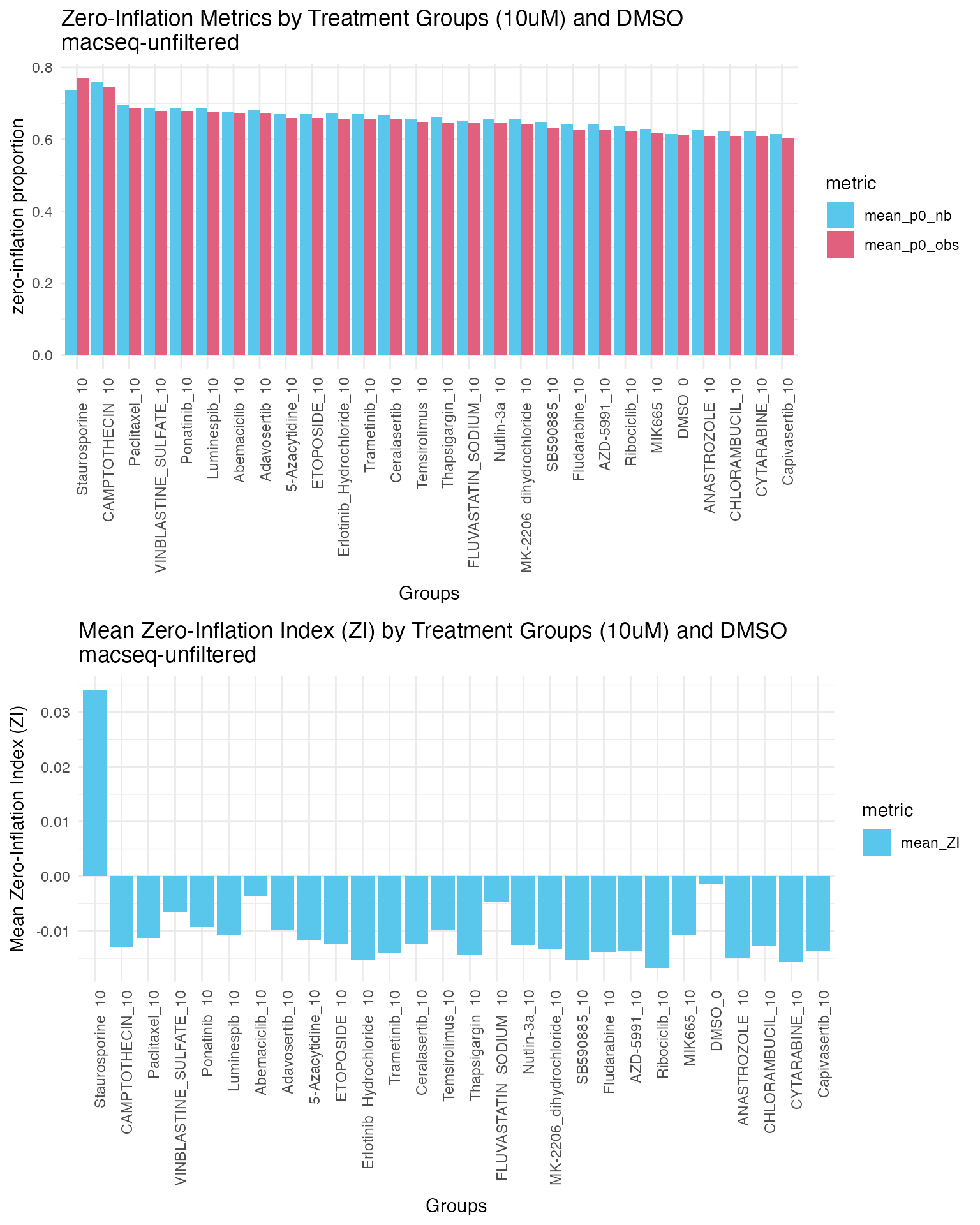 labs(title = "Zero-Inflation Metrics by Treatment Groups (10uM) and DMSO \nmacseq-unfiltered",